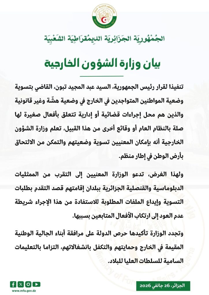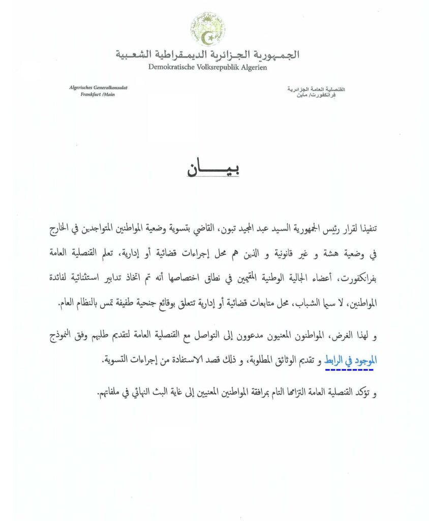 بيان : تسوية وضعية المواطنين المتواجدين في الخارج في وضعية هشة و غير قانونيةpar Consulat Général27 janvier 202629 janvier 2026 FORMULAIRE-aa290120261111Télécharger