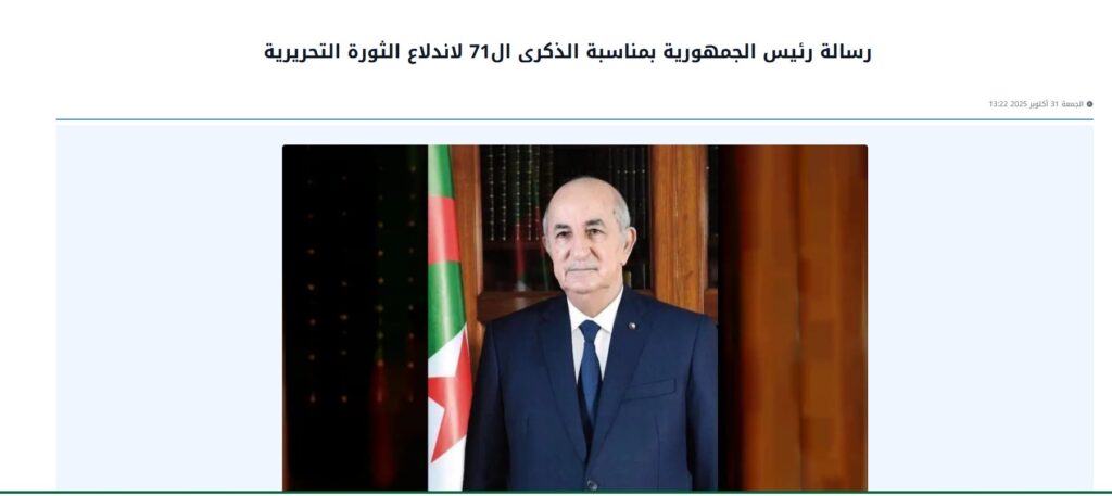 رسالة رئيس الجمهورية بمناسبة الذكرى ال71 لاندلاع الثورة التحريريةpar Consulat Général31 octobre 202531 octobre 2025