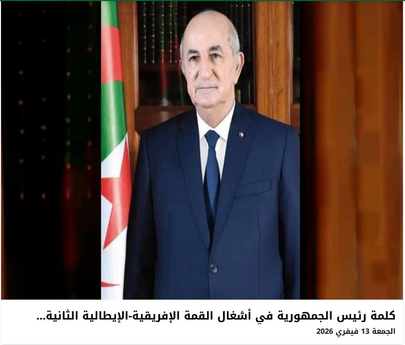 كلمة رئيس الجمهورية في أشغال القمة الإفريقية-الإيطالية الثانية بأديس أبابا