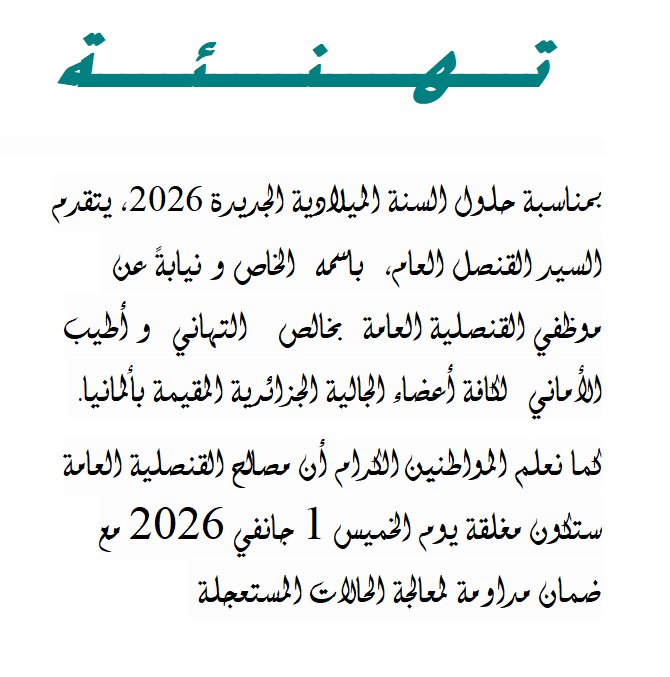مصالح القنصلية العامة مغلقة يوم الخميس 1 جانفي 2026par Consulat Général31 décembre 202531 décembre 2025