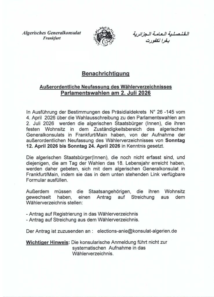 Aufnahme der außerordentlichen Neufassung des Wählerverzeichnisses
