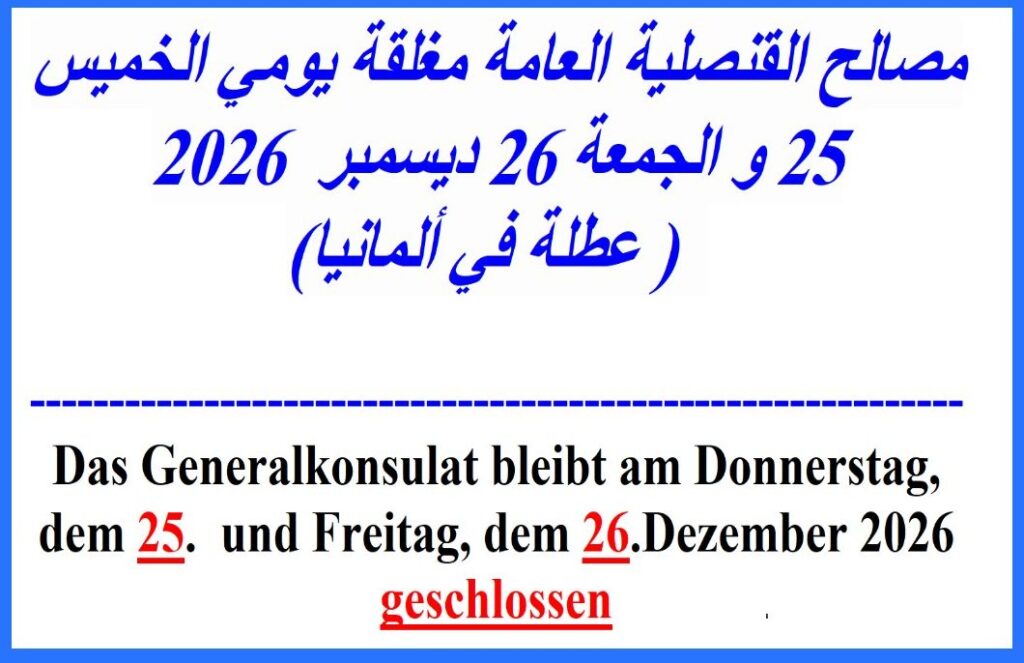 Das Generalkonsulat bleibt am Donnerstag, dem 25. und Freitag, dem 26.Dezember 2026 geschlossen par Consulat Général20 décembre 2025