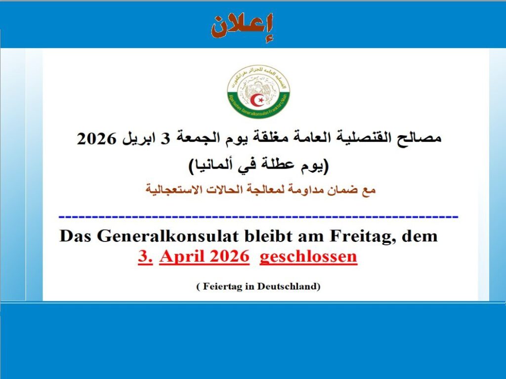 Das Generalkonsulat bleibt am Freitag, dem 3. April 2026 geschlossen.par Consulat Général31 mars 202631 mars 2026